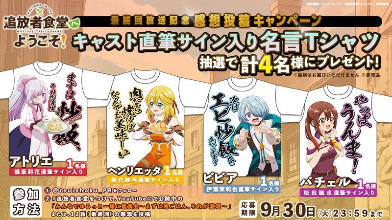 TVアニメ「追放者食堂へようこそ!」最終回放送記念!感想投稿キャンペーン
